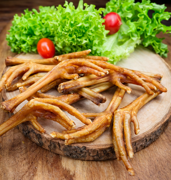 Herrlich knusprige Hühnerfüße, reich an Calcium.